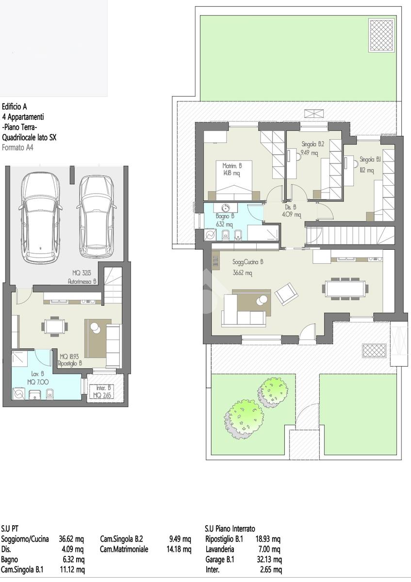 Al piano interrato, trovi un’ampia lavanderia, un pratico ripostiglio e un box doppio: ogni esigenza di spazio trova la sua soluzione.
