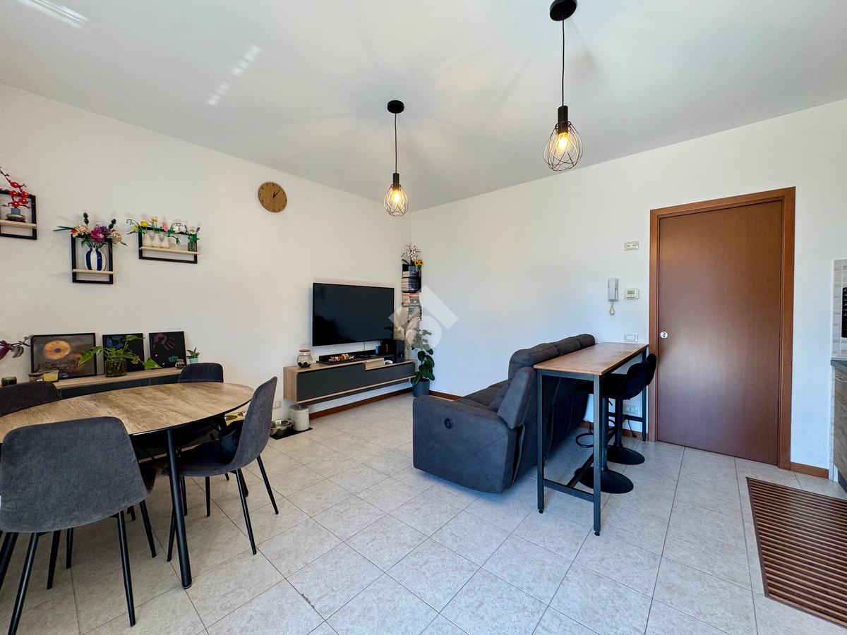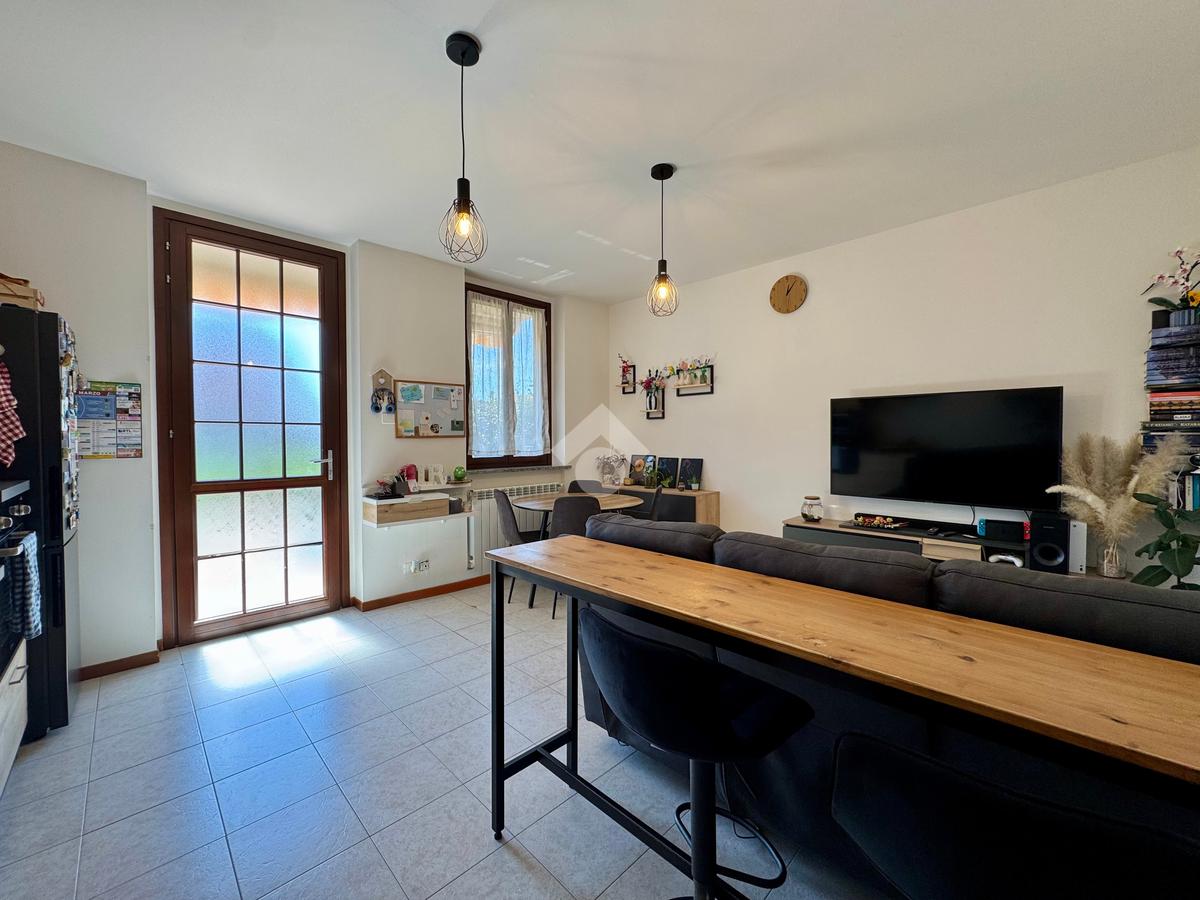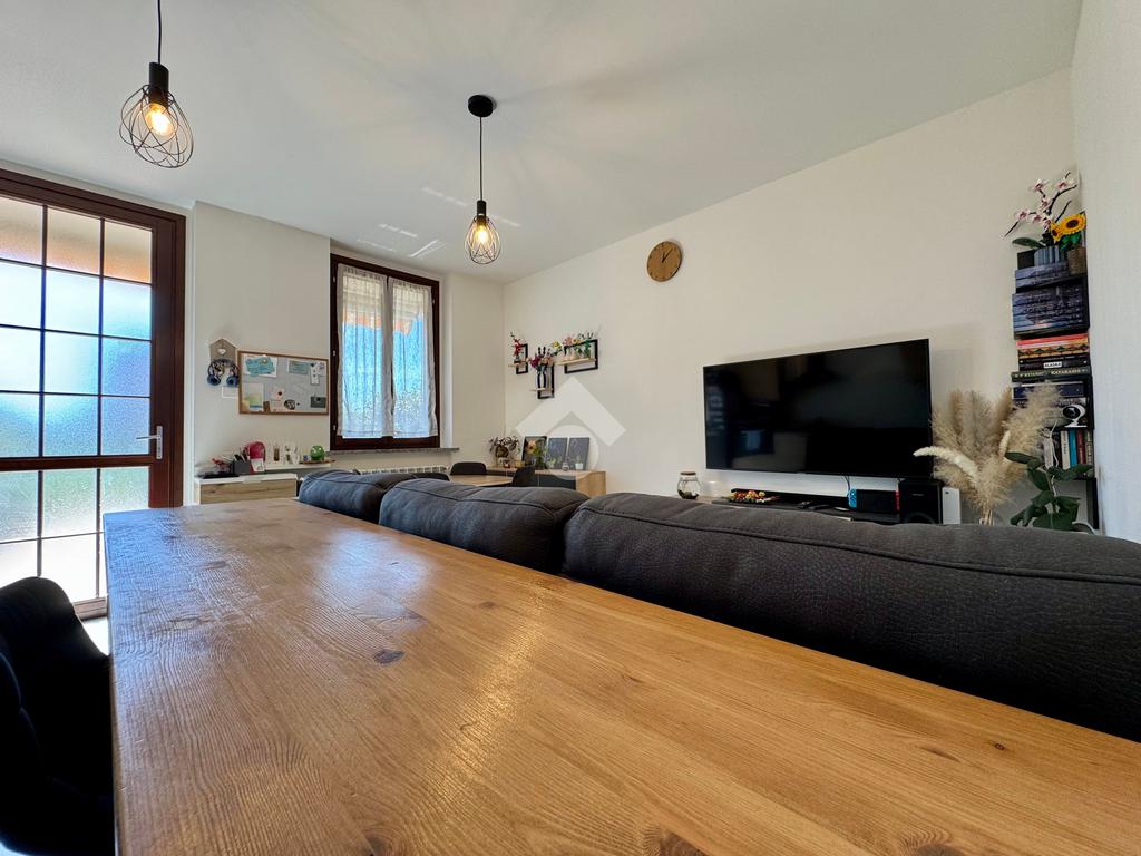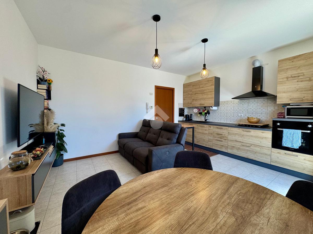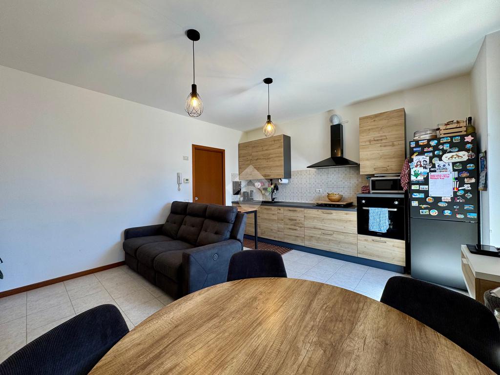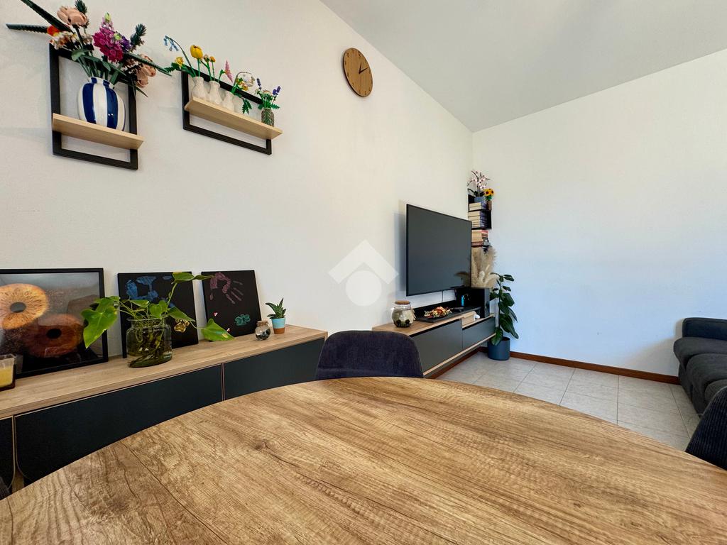 L’ingresso si apre su una zona giorno open space ben organizzata, con esposizione a sud che regala luce naturale per tutta la giornata, rendendo l’ambiente caldo e accogliente.