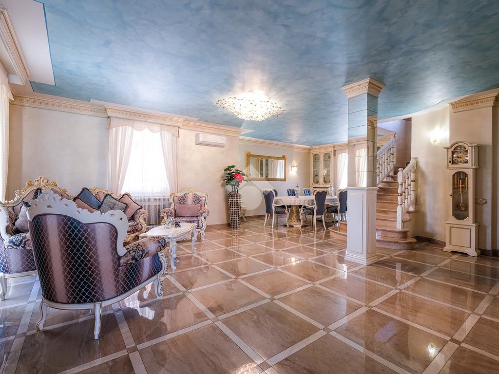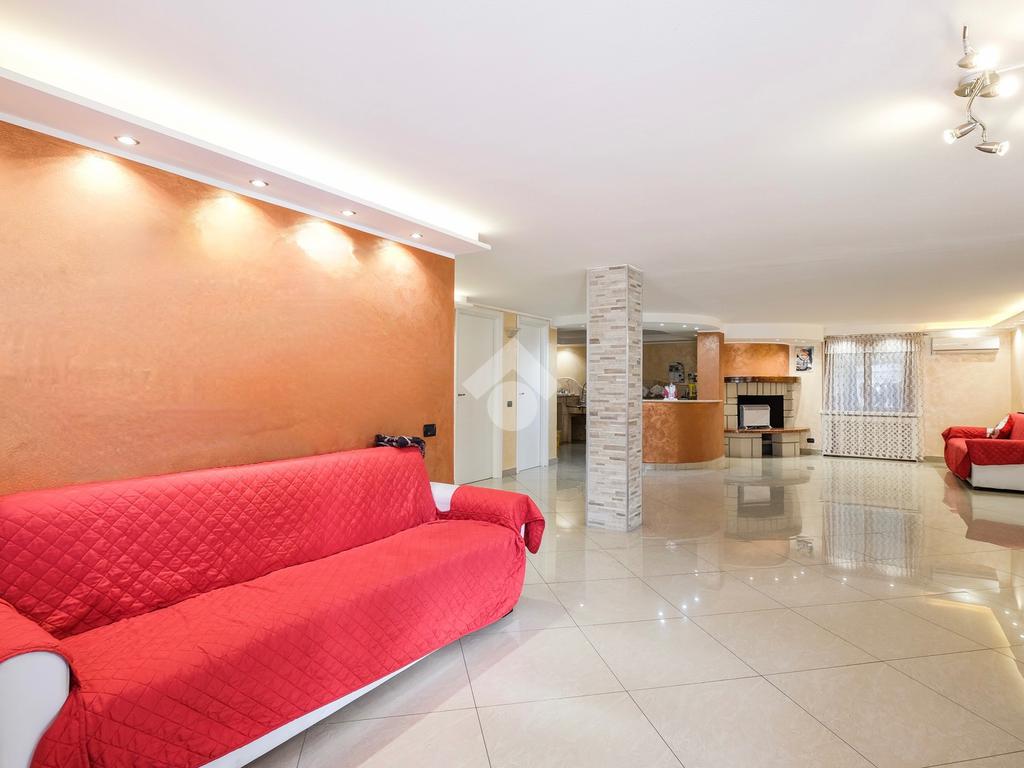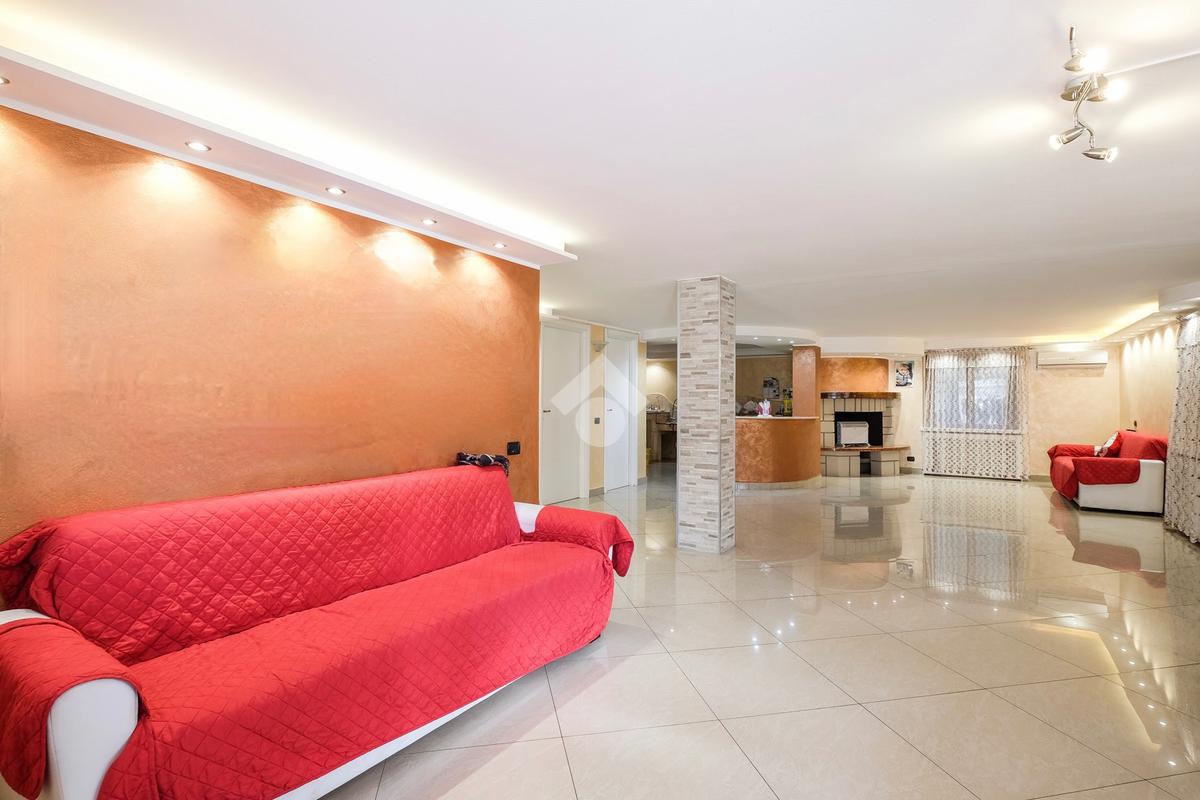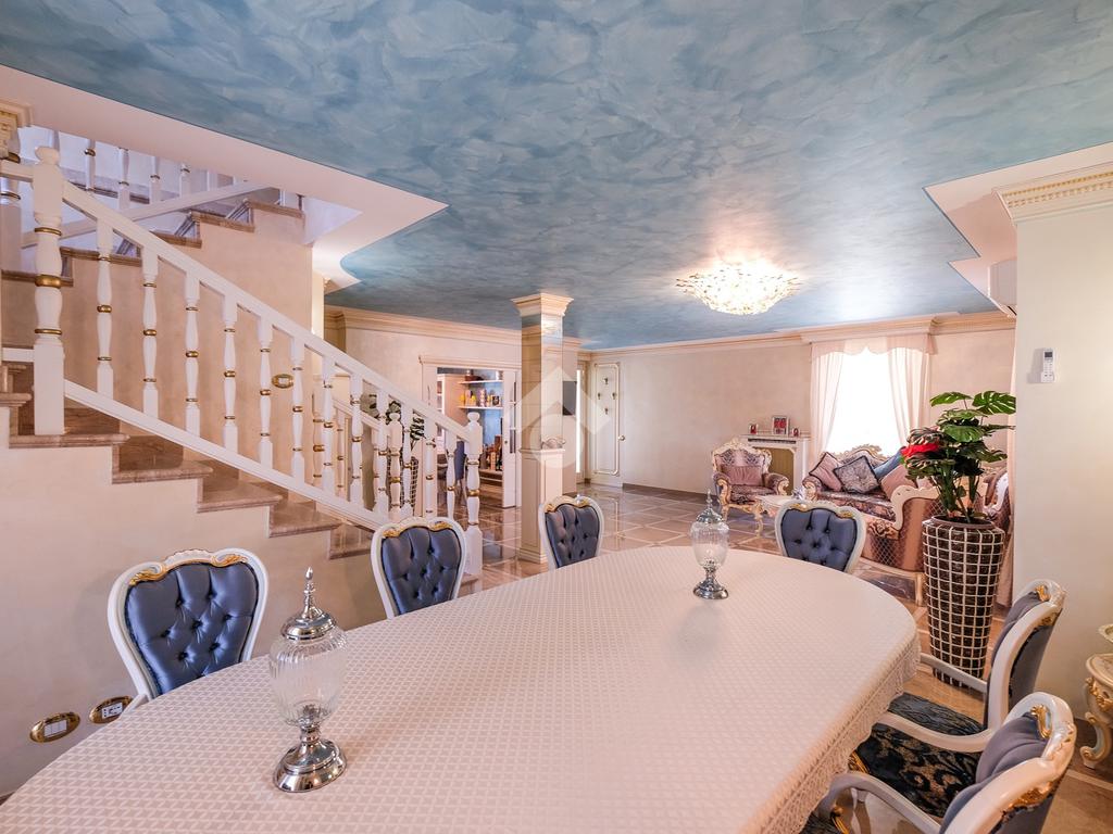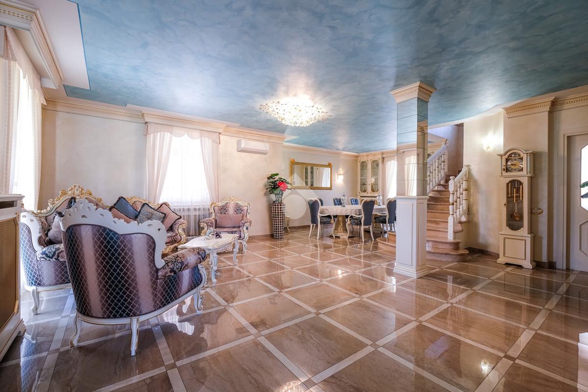Tramite l'ingresso indipendente ed il vialetto di presentazione, si accede alla zona giorno composta dal soggiorno di grandissime metrature, suddiviso tra sala da pranzo ed un bellissimo angolo relax caratterizzato dalla pavimentazione in marmo.