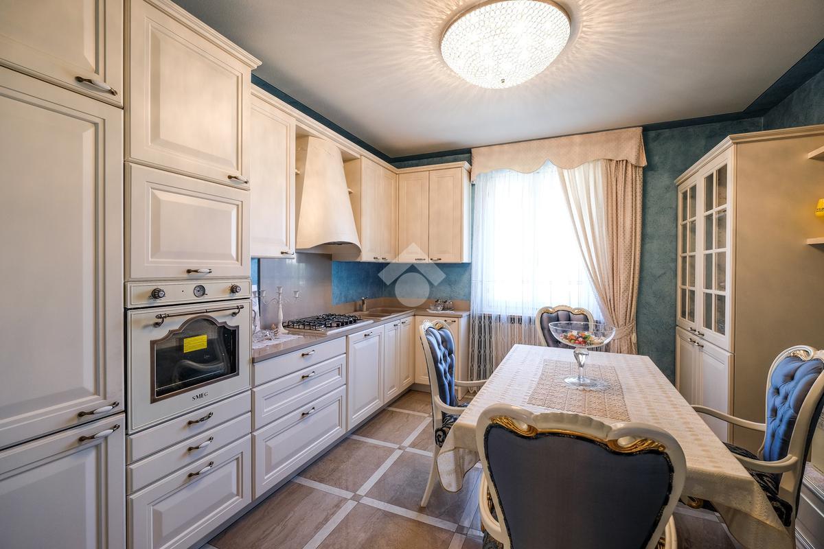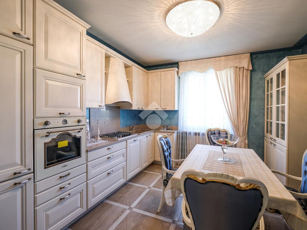 A completare il piano terra troviamo il bagno di servizio e la cucina completamente abitabile con porte scorrevoli in vetro.