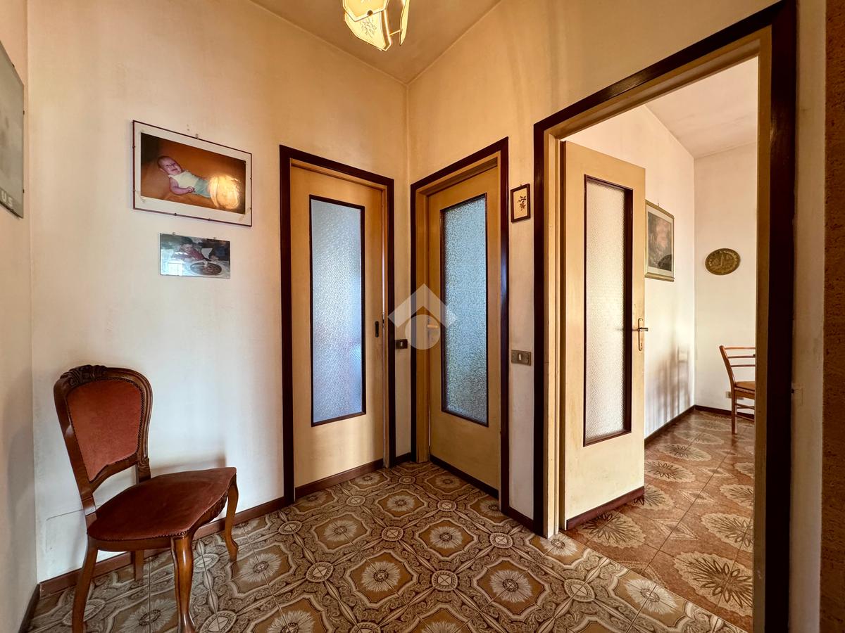 L’ingresso si apre su un comodo corridoio in stile anni ’70, che distribuisce gli ambienti in modo funzionale:
